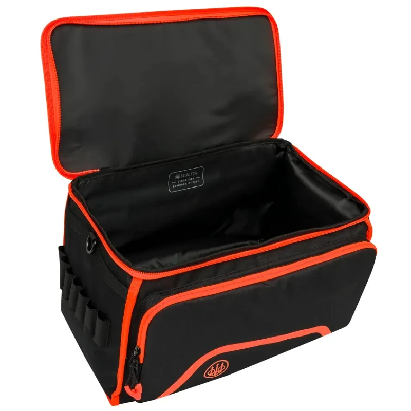The cartridge bag holds up to 10 boxes of 25 cartridges with 3 exterior pockets for chokes, caps and other accessories