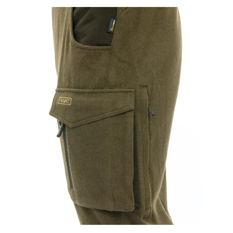 8-pocket construction: 2 front pockets -with an internal zippered micro-pocket-, 2 side cargo pockets -1 of them with a zippered micro-pocket- and 1 back zippered pocket. Hidden knife-pocket below the right cargo pocket. 2 ventilation zippers on sides. Elasticated waistband with hi-back kidney protection, nail button closure, belt loops plus suspenders -detachable with internal velcro-loops- improve comfort with an active fit. Cordura® reinforcement patches on bottoms for preventing tear and wear caused by high boots.