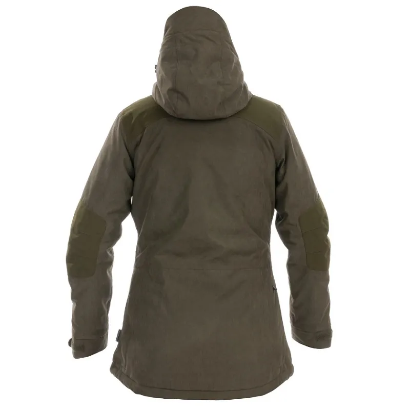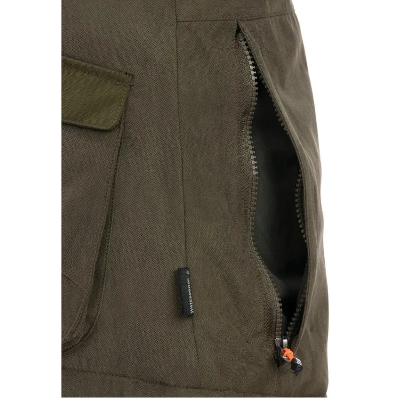 Extra-warm, silent and resistant waterproof jacket with reinforcements for rough forest conditions and useful gadgets for active hunters.