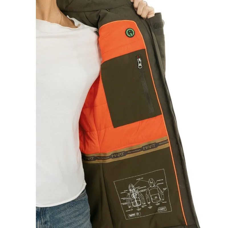 Construction in noiseless but resistant micro-toplon fabric with 500D nylon fabric reinforcements on shoulders and elbows. HDI100 insulating padding in the inside ensures high thermal insulation for your hunting sessions in cold weather. Chest zippered pockets cover full front side of garment for allowing enhanced storage capacity and hidding specific pouches for radio/GPS and mobile. All your accesories will be handy but protected from unwanted snaggings on bushes. Radio/GPS and mobile pockets have a media port to the inside for headphones (with loop to guide them in collar). Front bottom cargo pockets increase storage capacity even more. Backside zippered game pouch. Zippered detachable adjustable hood. Inside chest zippered pocket and mesh pocket for hood when detached. High waterproofness (10000mm) and breathability (10000 gr/m2).