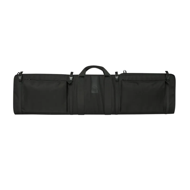 For convenient transport and quick access, the case can be securely attached to a car’s headrests using a webbing system with buckle attachments, allowing the rifle to be safely stored behind the seats. A longer cord system provides extensive adjustability, while two large front pockets offer storage for bipods, suppressors, and ammunition.
